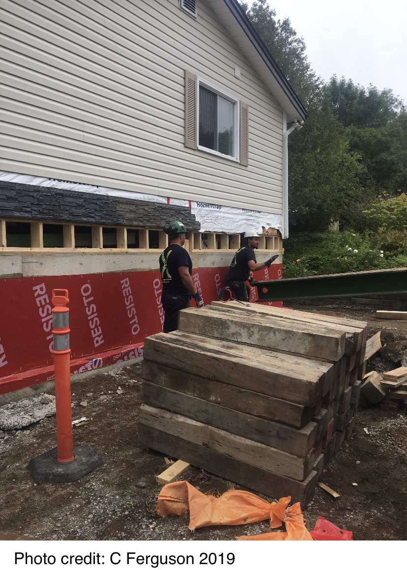 After the cottage is lowered, phase two begins: the septic must be evaluated, the water and sewer and gas for the generator and fireplace reconnected, the berm and armour stone wall engineered and constructed, the large deck built, the siding replaced and some attempt at landscaping made before the snow flies.