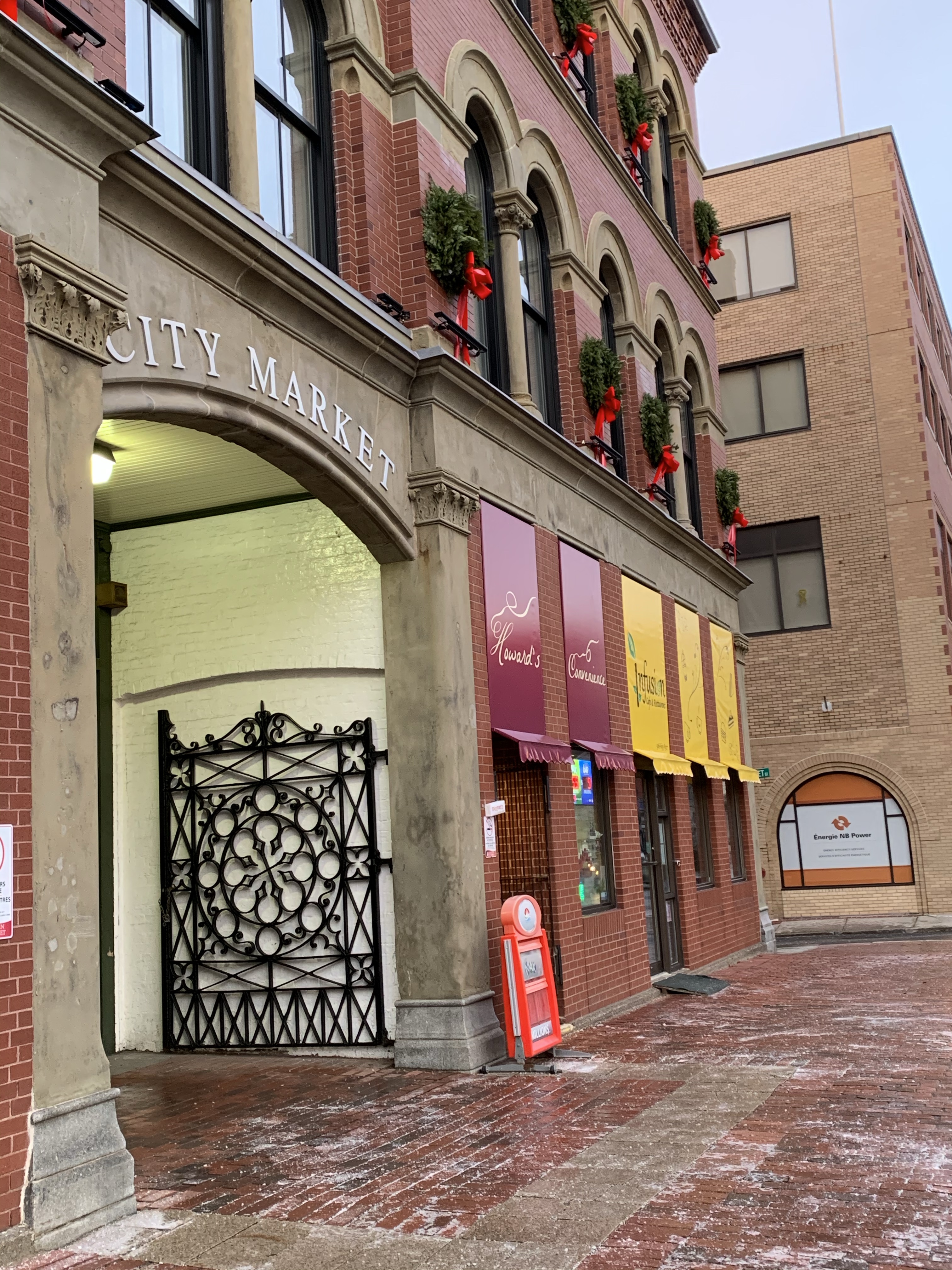 SO pretty this time of year! The beautiful swags highlighting the ship’s-hull ceiling, the colours and smell of fruits and veggies, the aroma of baking bread and fresh-brewed coffee… we Saint John-ers take this WAY too much for granted!