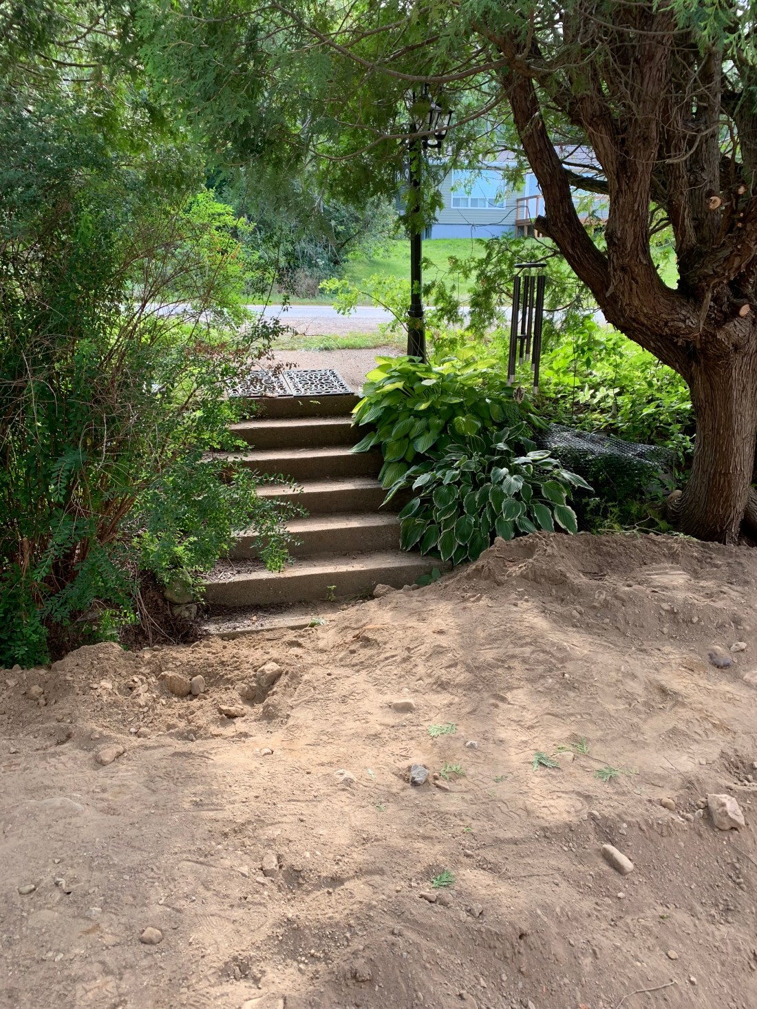 The berm stretches from one back corner of the house and all the way around the front, almost to the other back corner. The land at the back of the house has been built up 3-4 feet. The plan is to redo gardens around the entire perimeter, dressing up the foundation and creating a garden/seating area on the berm itself. We were able to save and temporarily transplant some of our shrubs and flowers but next spring we have a big project ahead of us (anyone who saw our gardens before realizes what an undertaking that is…) but we are EXCITED for the opportunity to create beautiful new spaces :)!