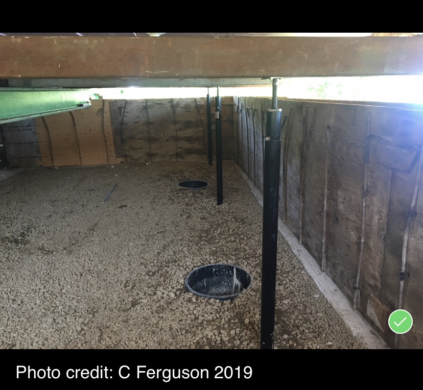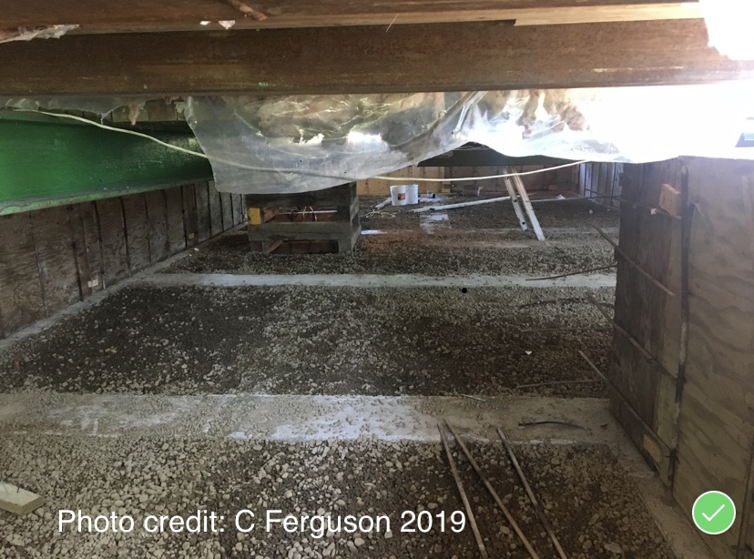 The crawl space has been prepared for support posts/beams under the house. Yes, we have had some cracks in our drywall as the process has gone on, and we expect with settling we may have some more, but the house will now be level (for the first time in its life) and the cracks will be easily fixed with a skim of fill and paint.