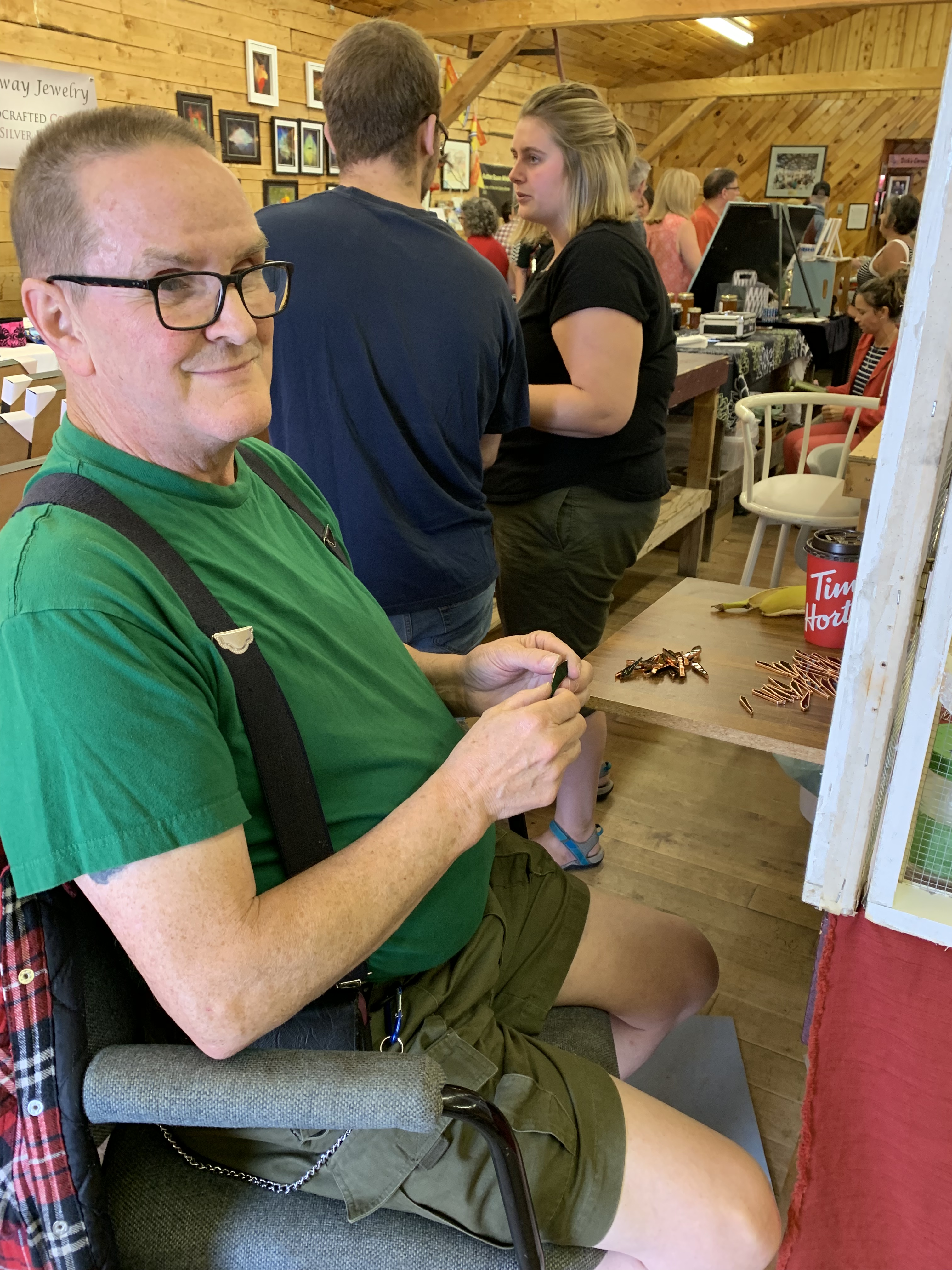 Likewise, another favourite stop of mine is to visit Tina MacPhee at I Love My Jewellry Too. Stationed inside the main building, Tina’s corner always draws a crowd. She tells me that she loves being part of the supportive market community and having the opportunity to get out and talk with people. Her work with copper, brass and sterling, leather and artful etching results in lovely jewellery with a natural vibe. Just the thing for a lucky person on my Christmas list ๐