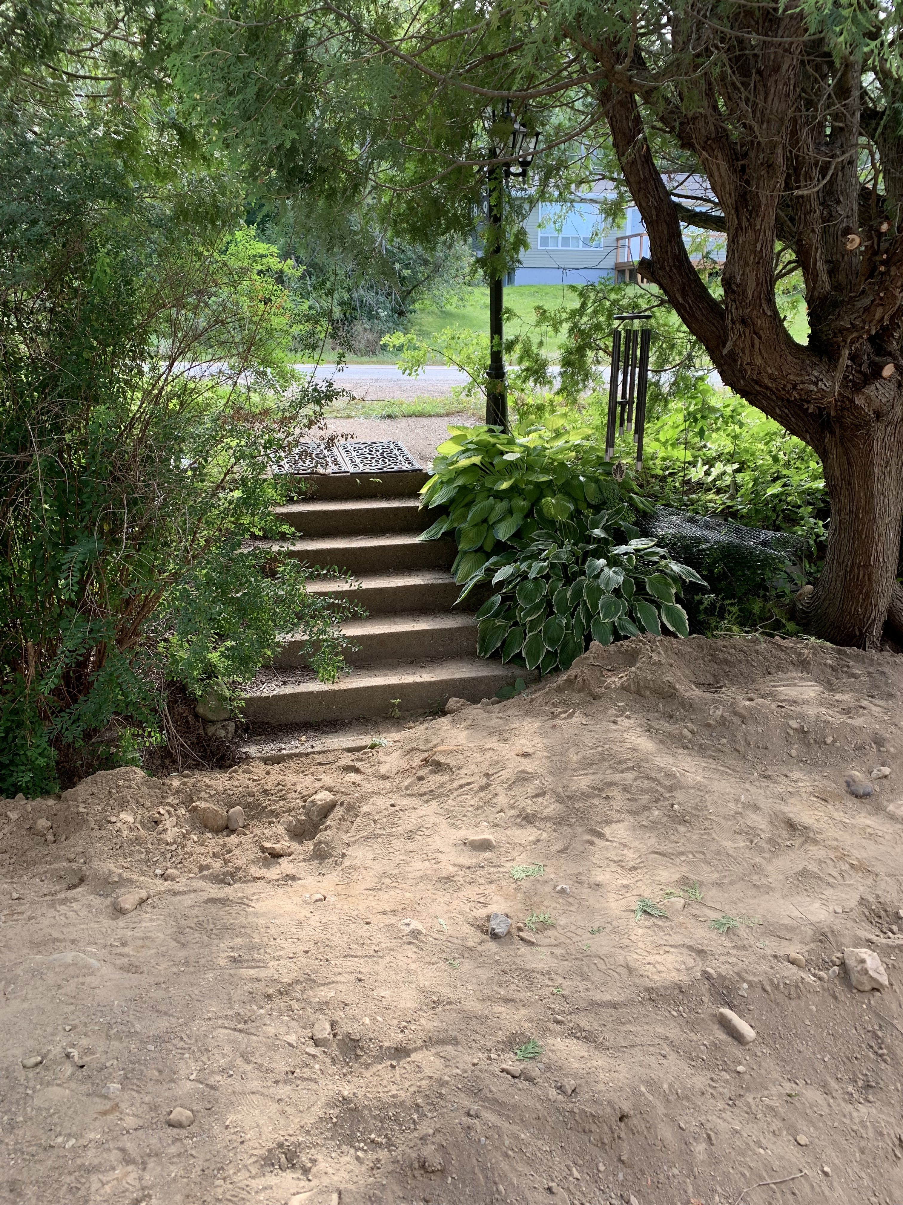 Prepping the ground for the deck. There’s now 3-4 feet of land at the back of the house. The stairs will be hidden by a road-level ramp to the new wrap-around deck