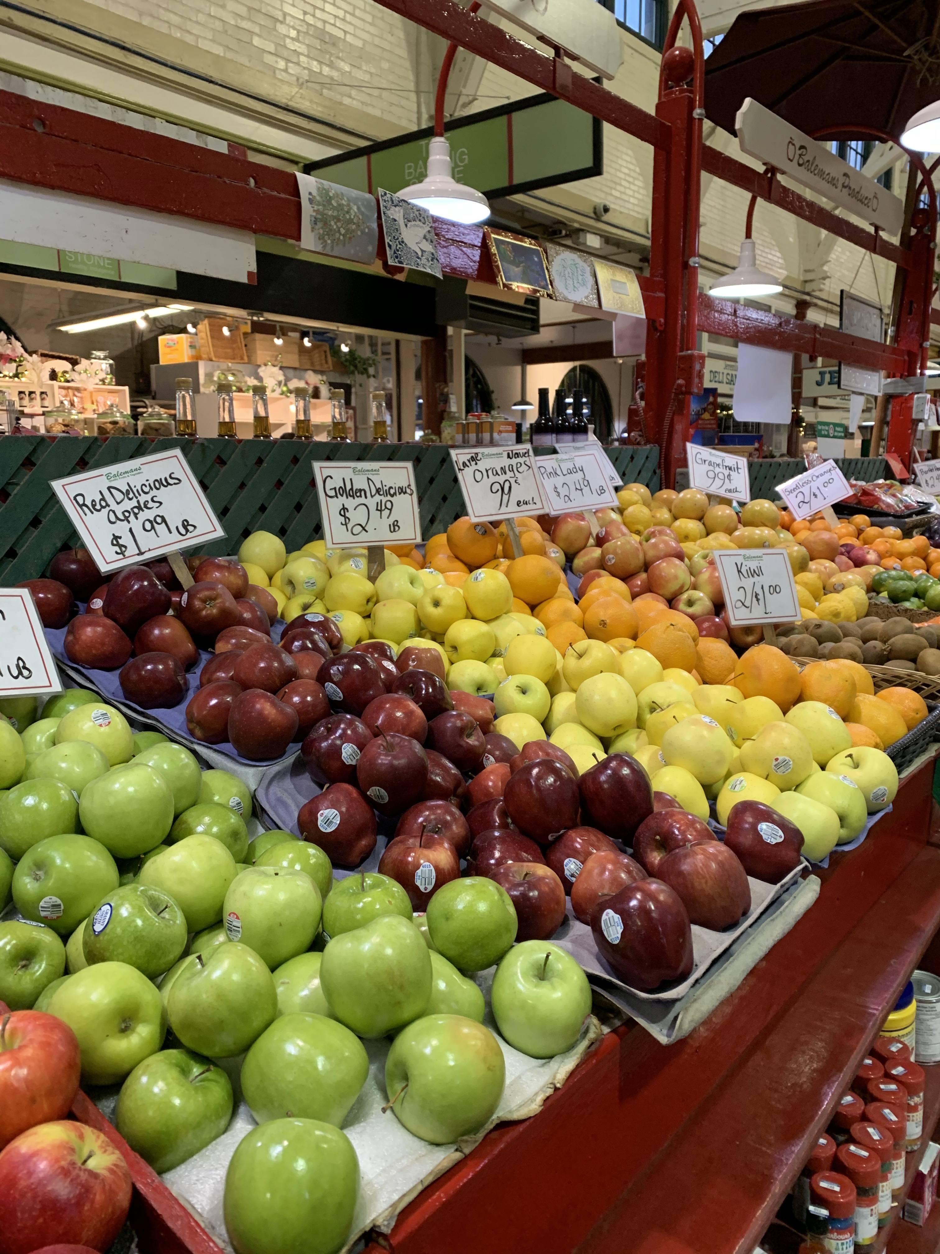 SO pretty this time of year! The beautiful swags highlighting the ship’s-hull ceiling, the colours and smell of fruits and veggies, the aroma of baking bread and fresh-brewed coffee… we Saint John-ers take this WAY too much for granted!